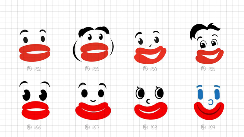 1)比例夸張:平面構成中,特異是一個提升識別度和獨特性的表現手法,抓住香腸嘴“面部占比大”的特性,嘗試放大嘴唇輪廓到極致,夸張到比臉還大。